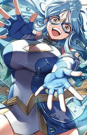 The fifth volume of the Kamen America series starts a brand new saga! As Carly and the Kamen Corps rise to newfound respect and fame, giant robots start appearing and wreaking havoc across the globe. A henshin-hero team, the Zenerengers, appears out of nowhere and stands dedicated to stopping these malevolent machines -- but what is their true intent? Kamen America, Kamen Comet, Kamen Ramen, and Kamen Victory will have to combine their powers in new and creative ways to face a threat more powerful than any they have encountered so far! Feast your eyes on a heaping helping of the blue and bubbly Kamen Ramen on this fun and flirty virgin variant cover by 8HUSA! It could leave you hungry AND thirsty!